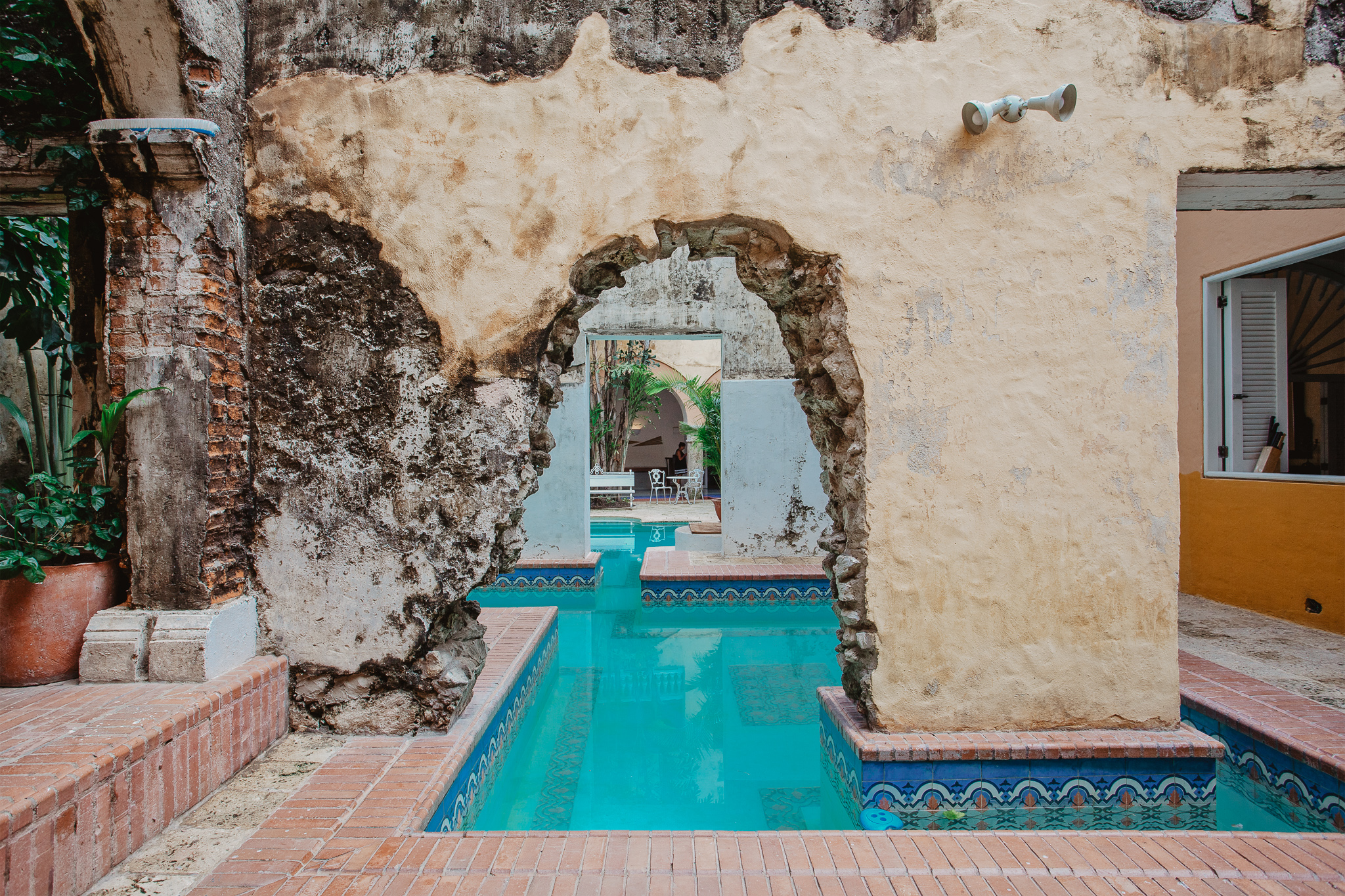 Ubicada en el centro histórico de Cartagena, esta casa se desarrolla a partir de un gran patio central con piscina que enmarca las funciones lúdicas de una típica casa de descanso.