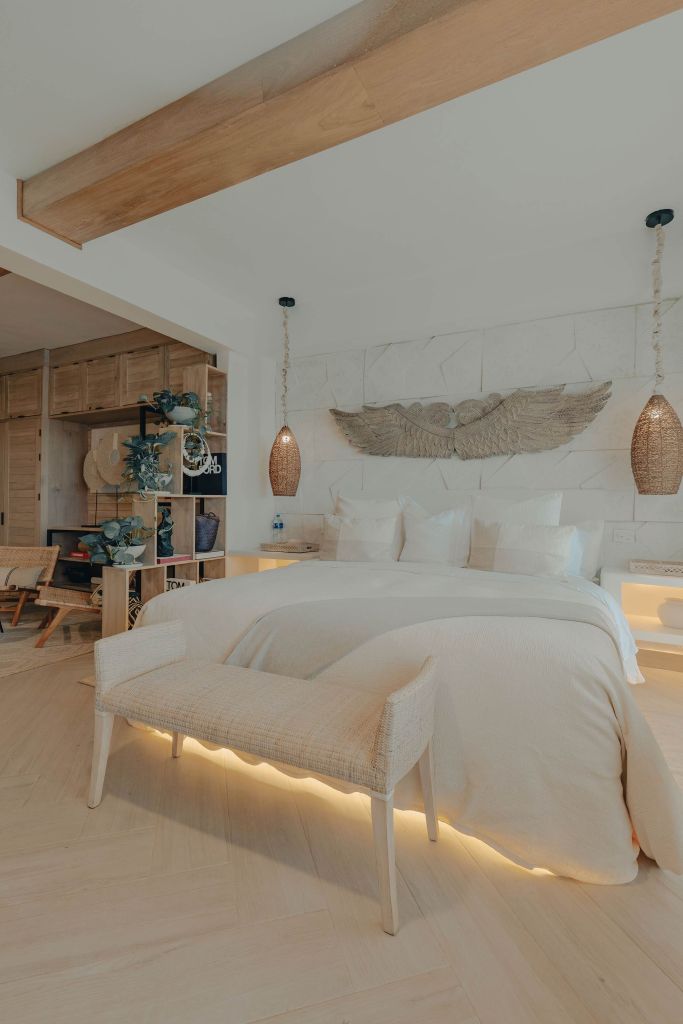 Esta visión creativa no solo busca crear un ambiente que evoca la serenidad y la vitalidad de la naturaleza, sino que también aspira a proporcionar un refugio acogedor y revitalizante. A través de la creatividad y la innovación, este diseño transforma cada rincón en una obra de arte viviente, invitando a sus habitantes a experimentar una conexión profunda y renovadora con sus experiencias de descanso y recogimiento, invitándolos a la contemplación en un espacio bien iluminado y relajante.