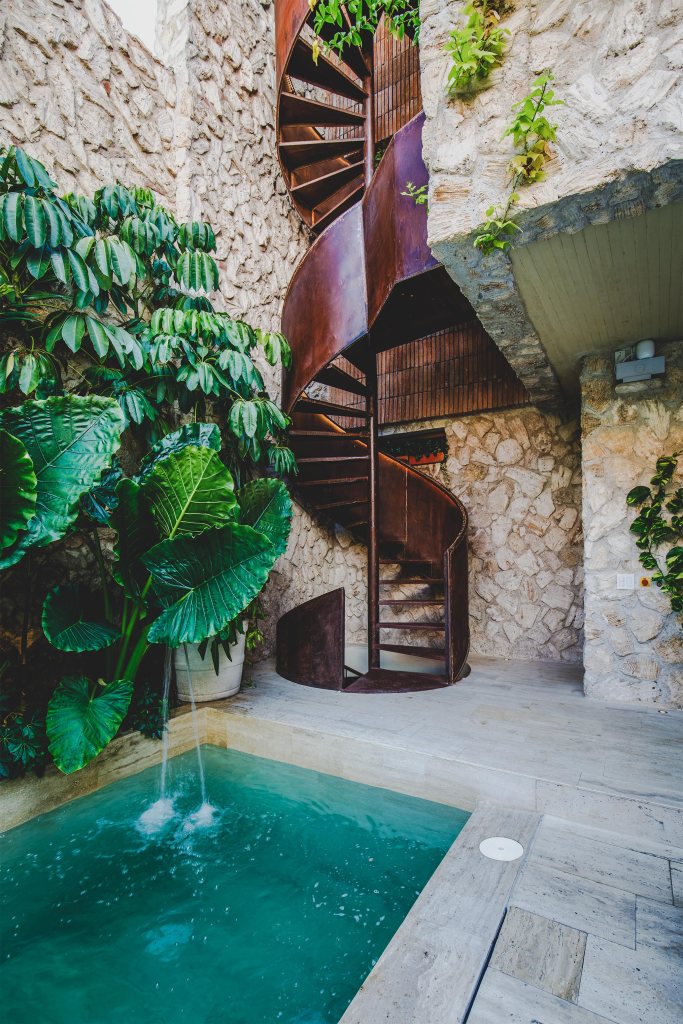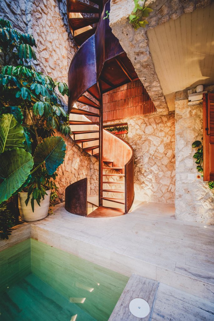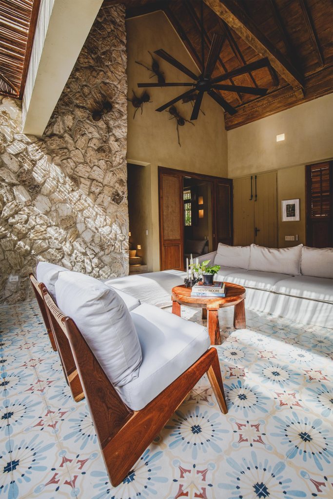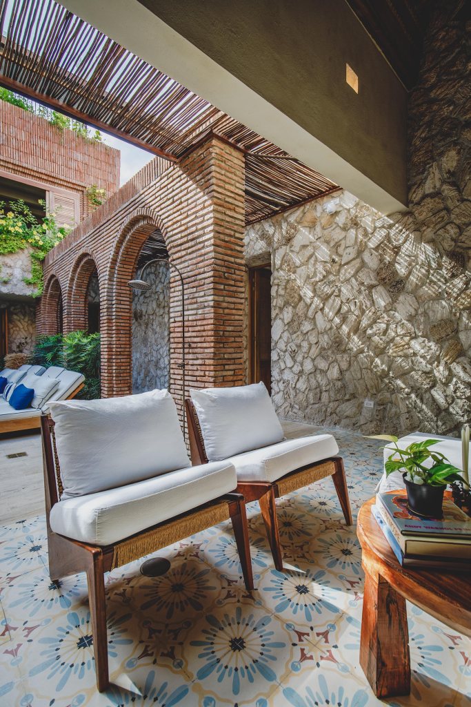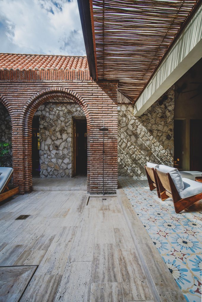 El material es el gran protagonista. Más que un acabado, es un elemento expresivo que organiza la experiencia espacial. Su reiteración genera textura, regula la luz caribeña y ofrece continuidad entre la tradición constructiva y la contemporaneidad.