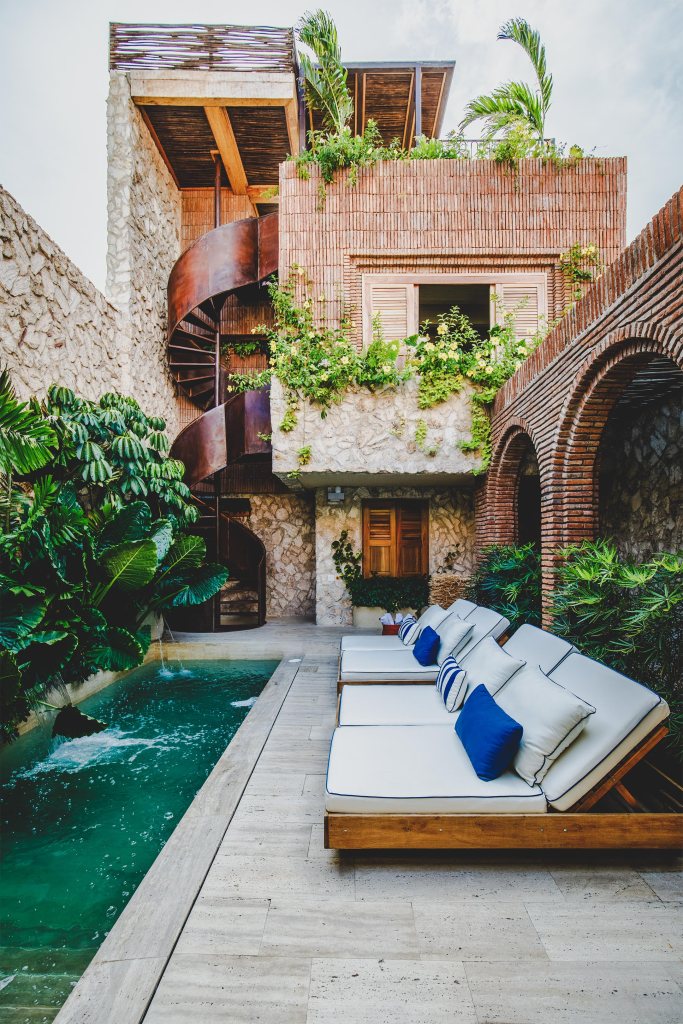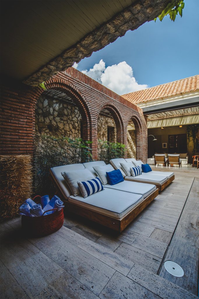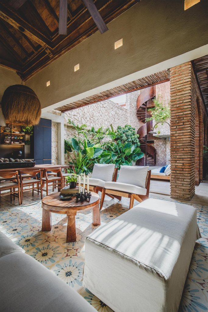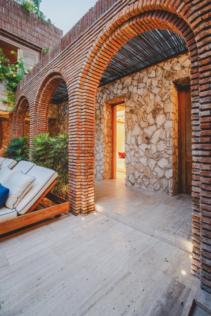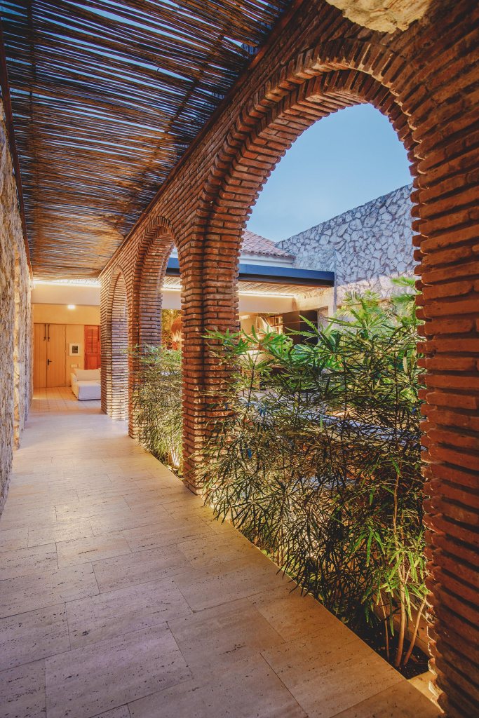 Ese gesto de reiteración material se traduce en una sensibilidad táctil y atmosférica. El ladrillo absorbe la luz intensa del Caribe y la devuelve matizada; su porosidad contrasta con la tersura del agua en el patio; su densidad se enfrenta a la ligereza del aire que circula libremente en la casa. La materia se vuelve aquí relato: invita a sentir la arquitectura no solo como forma, sino como experiencia multisensorial.