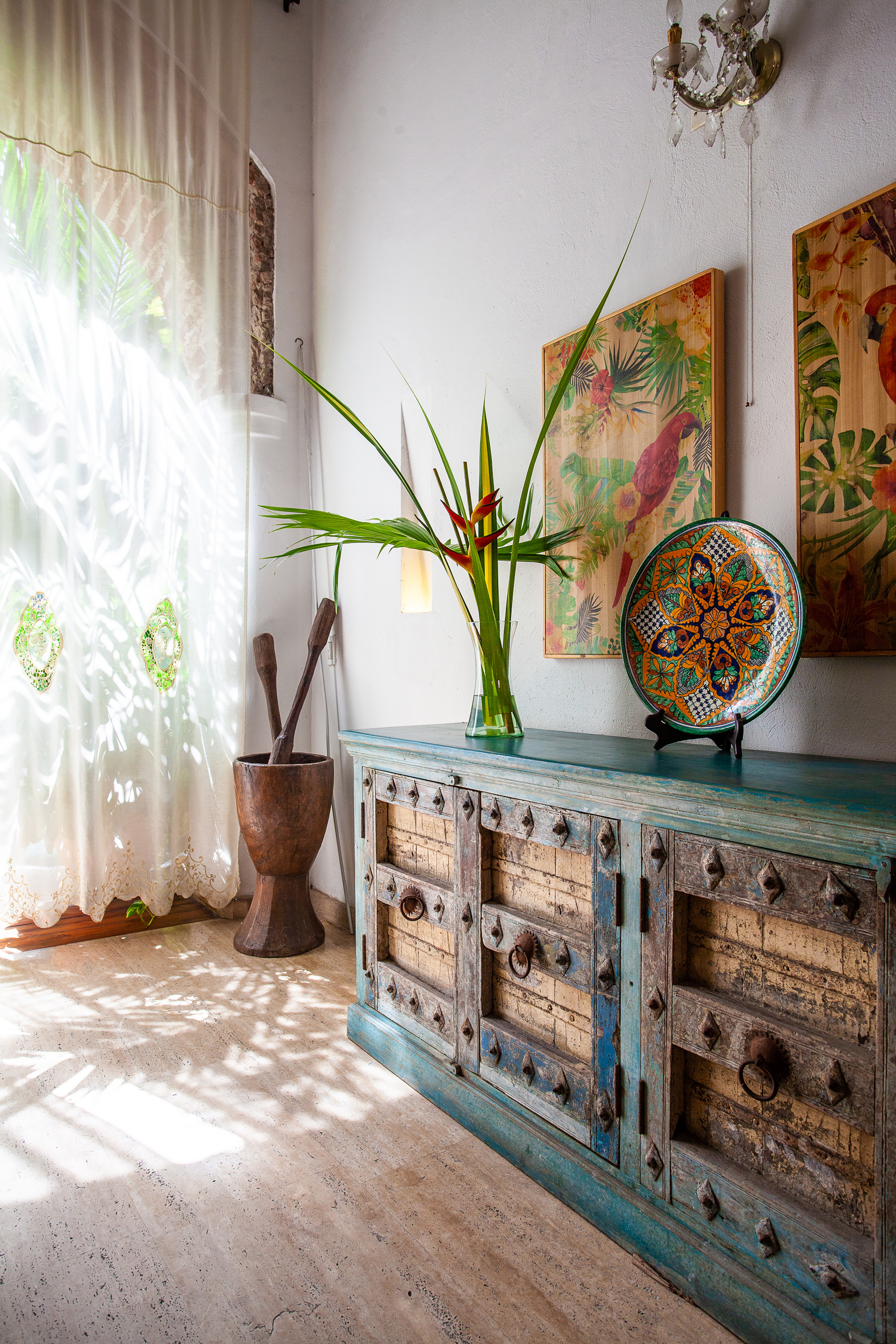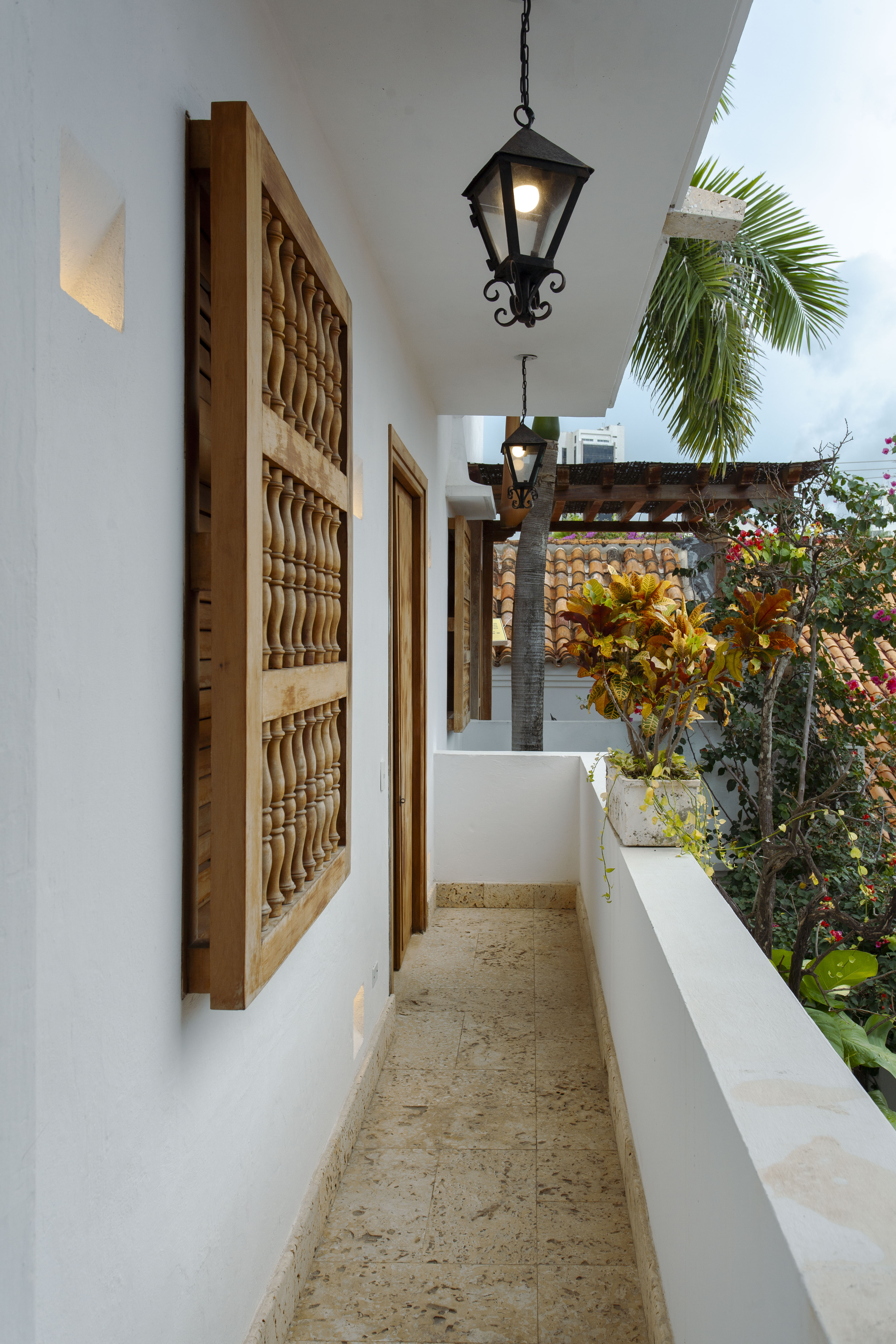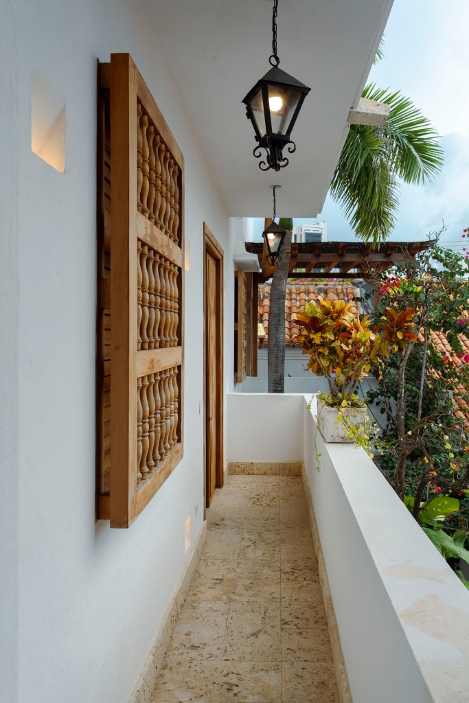Al adentrarnos en los espacios interiores de Cartagena, somos recibidos por una sinfonía de texturas y colores que nos cautivan desde el primer momento. Los pisos de mosaico brillante nos guían hacia exuberantes patios interiores, donde la vegetación se convierte en parte integral del diseño. Cada detalle, desde las delicadas celosías hasta las elegantes columnas, nos transporta a un mundo donde el pasado se fusiona con el presente de una manera armoniosa y emotiva.