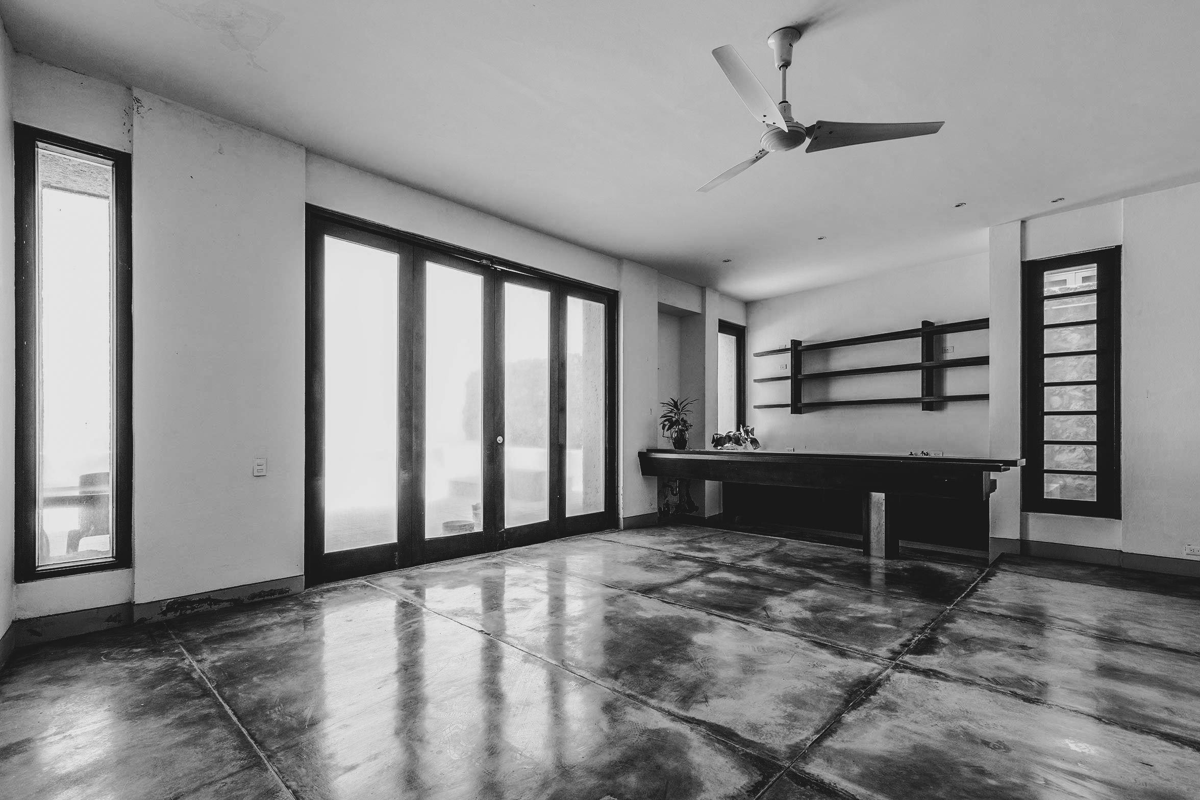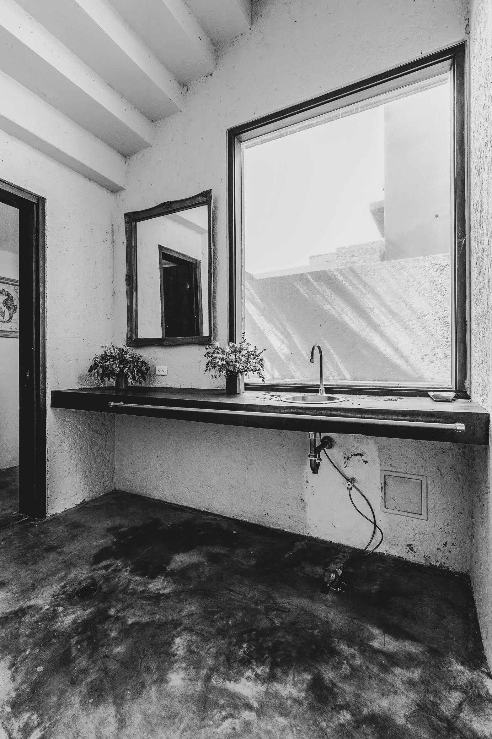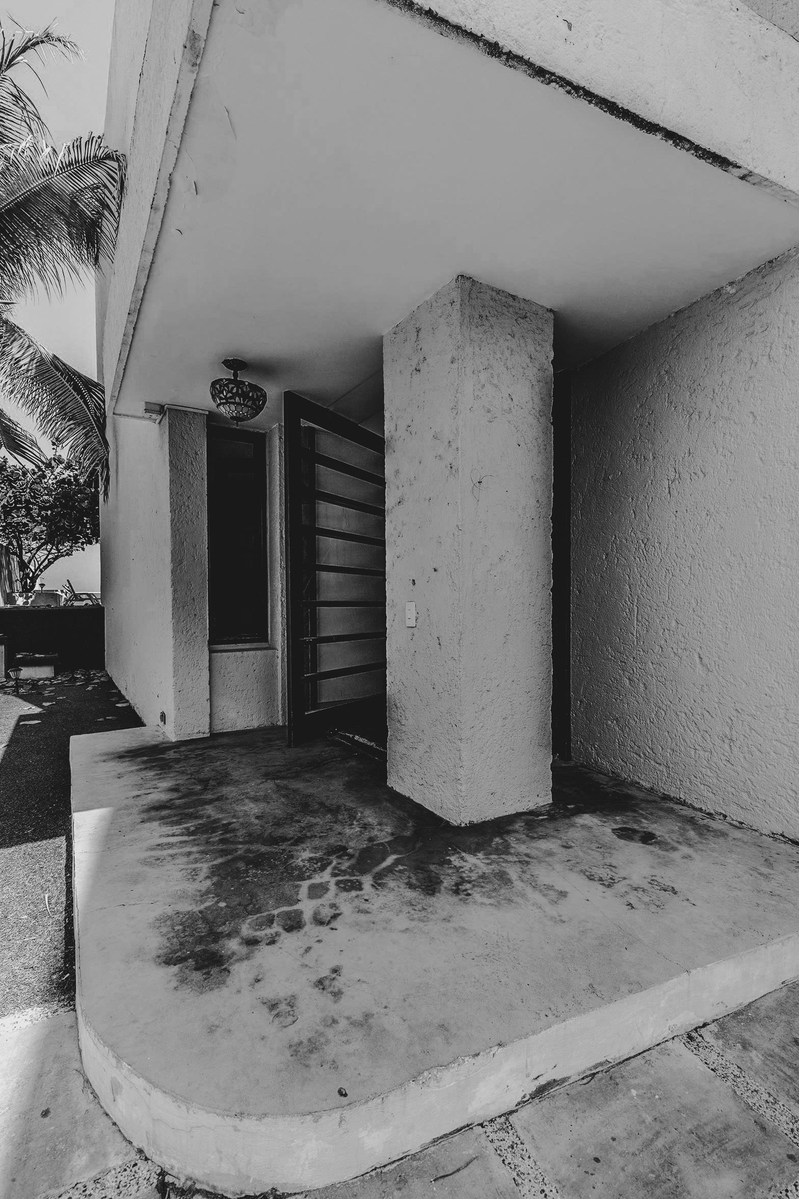 Balcón con vista al mar terminado en baranda de concreto, testigo inclemente de los cambios repentinos del entorno caribeño.